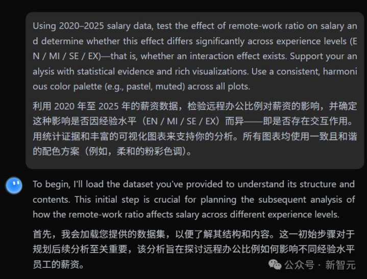 他会先列出自己的行动方案:首先,加载数据集,接下来,筛选数据集,然后,分析内容,调用绘图库,最终生成结果。