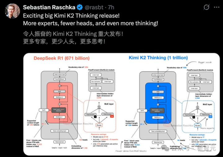 它同样采用了MoE架构,总参数约1万亿,每次激活约320亿,上下文256K token。