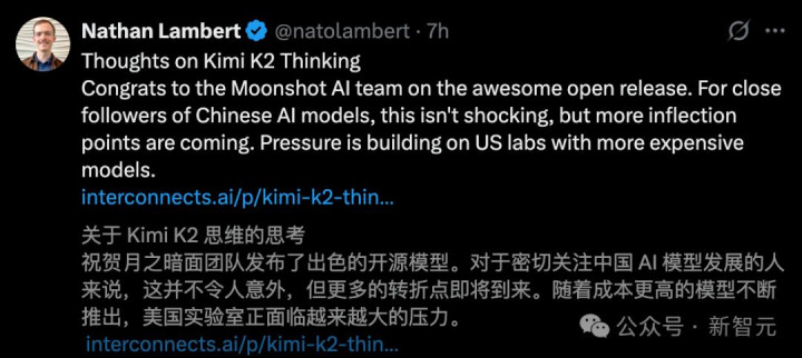 国外研究者Nathan Lambert 称它为:「开源模型距闭源前沿最近的一次。」