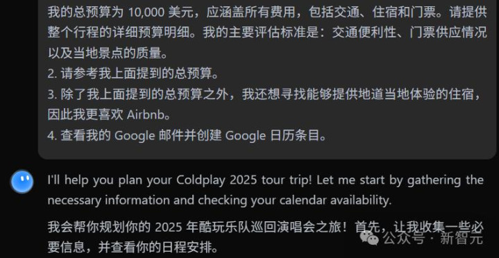 你只要提出你的需求,比如「我的预算是1000美元,给我规划我的演唱会之旅」。